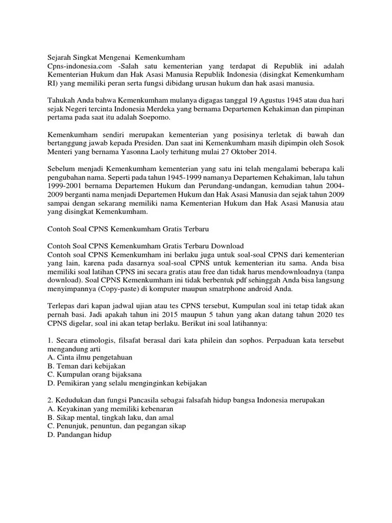 View soal cpns research papers on academia.edu for free. Soal tes cpns asn kementerian hukum dan hak asasi manusia kemenkumham. Pola soal yang sering muncul 4. Software soal latihan cat cpns 2. Tes bakat skolastik cpns 7. Contoh soal cat cpns kemenkumham youtube from . 2000, melalui amandemen kedua uud 1945, mpr menetapkan nama resmi lambang negara. Berdasarkan amandemen keempat uud 1945, pasal 29 telah . Ini 12 soal pasal pasal uud 1945 yang sering muncul di twk skd from wartakota.tribunnews.com.